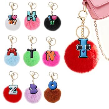 Alphabet Fuzzy Ball Cute Cartoon Key Decorations Creative Modeling Pvc Soft Rubber Diy Decorative Buckle Cross-Border E-Commerce