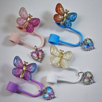 Nắp bướm hợp kim Kim Cương-Studded sơn dầu phong cách mặt dây chuyền Silicone PVC rơm bụi phổ cắm