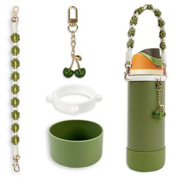 Silicone Boot & xử lý Strap Set với Cherry Charm tương thích Owala chai nước 24 oz 32 40 miễn phí SIP Non-Slip cup chủ cơ sở