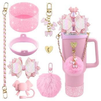Cho Stanley Cup 40Oz 2 Silicone Khởi Động Cốc 1 Hoa Rơm Bìa Topper Charms Móc Son Môi Chủ Túi Pompom Bóng Dễ Thương